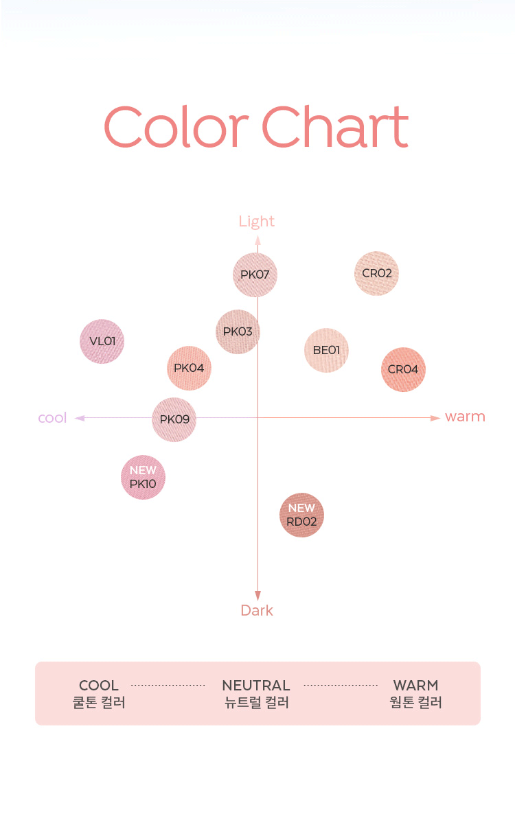 This blush provides bright and lively cheeks as if being applied with pastel shades. The soft focusing effects and pink flower complex provide bright and vitalizing cheeks with blurring effect. The texture that firmly covers skin texture provides thin and soft finish like feather.